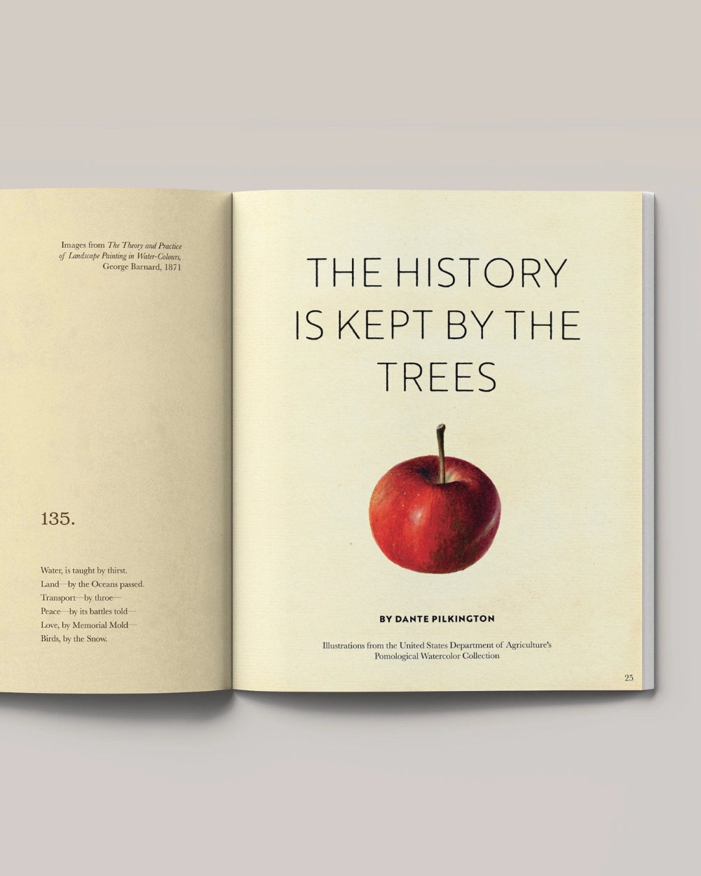 Contributors include: Cynthia Chou on the bootlegging origins of NASCAR | Arabella Paulovich on the legends of the English ale wife | Carla Pires Vieira Da Rocha on the art of the caipirinha | Dante Pilkington on the pomological histories kept by the trees
