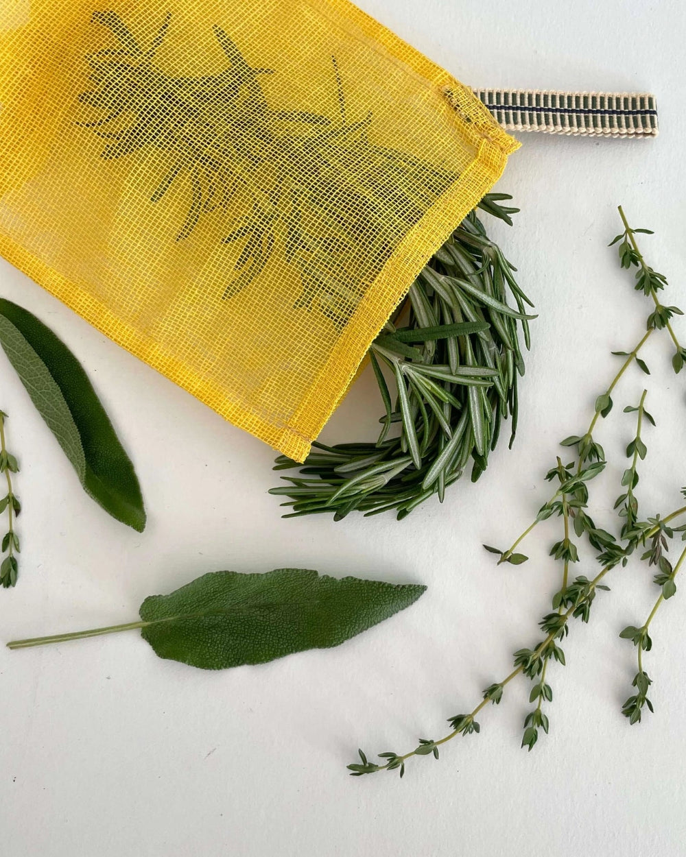 A major upgrade to the utilitarian produce bag w/ beautiful 100% cotton net bags that can be inserted into a larger shopping bag to keep small items protected & in check.
