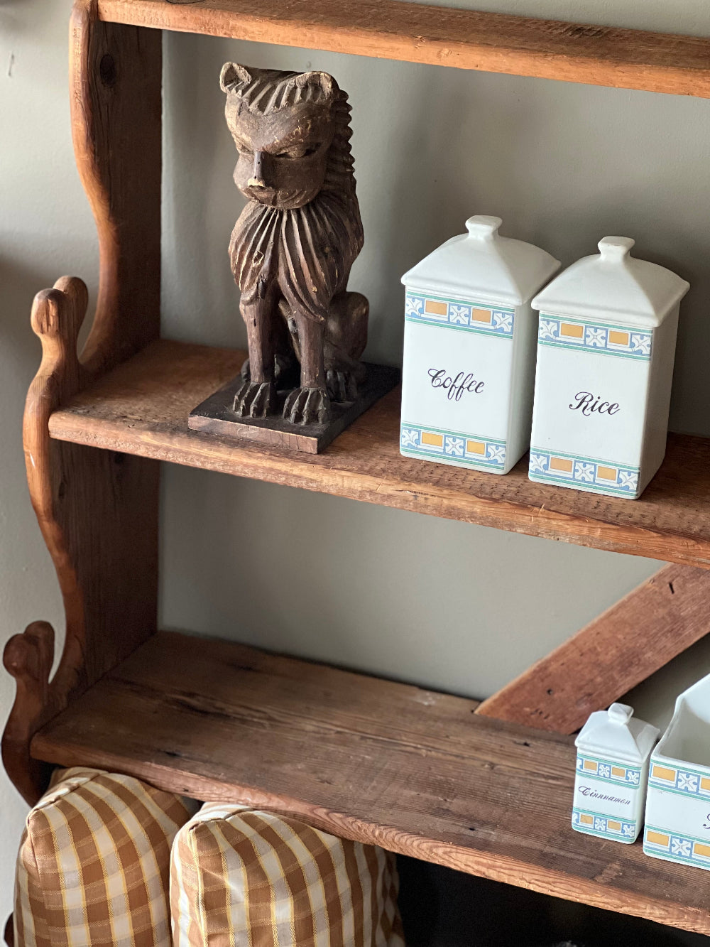 Gorgeous carved wood primitive shelf with lovely folk art detail. Crafted in the early 20th century with mid 19th century wood planks. Fantastic condition and sturdy structure. Shallow enough that it could work perfectly in a hallway or entry.